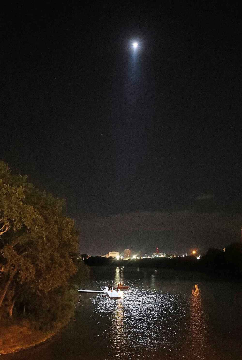 July 15 — The spotlight from AIR 1, the police helicopter lights up a water rescue, around 2:20 am seen from the Norwood Bridge.JOHN WOODS / WINNIPEG FREE PRESS