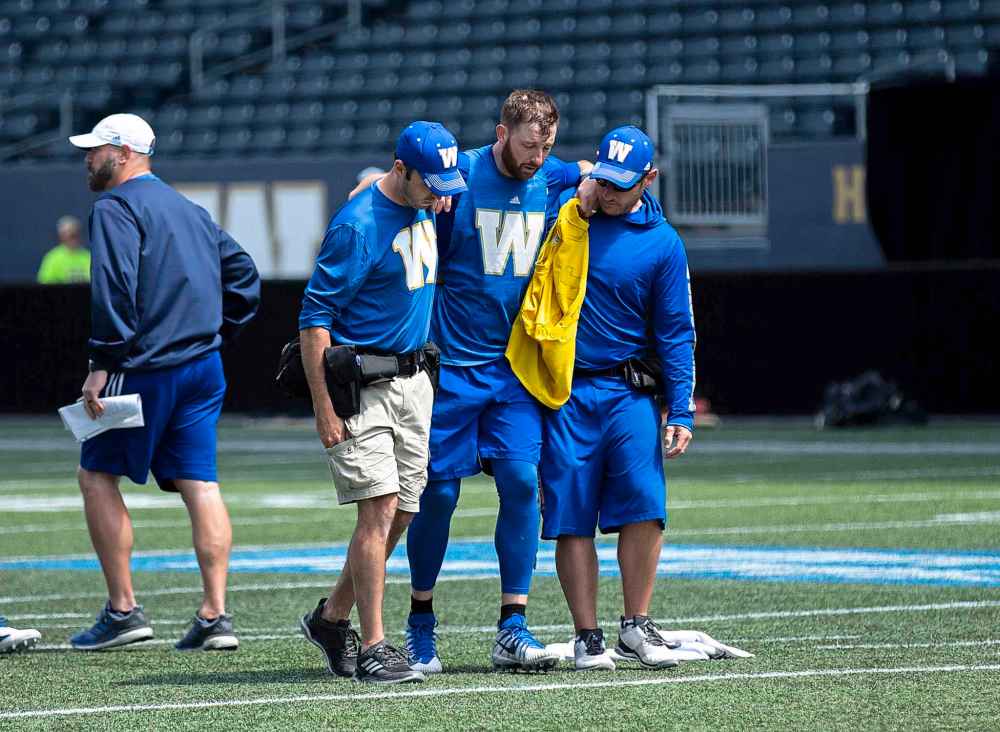 June 6 — Winnipeg Blue Bombers quarterback Matt Nichols comes off of the field after an injury during practice.RUTH BONNEVILLE / WINNIPEG FREE PRESS