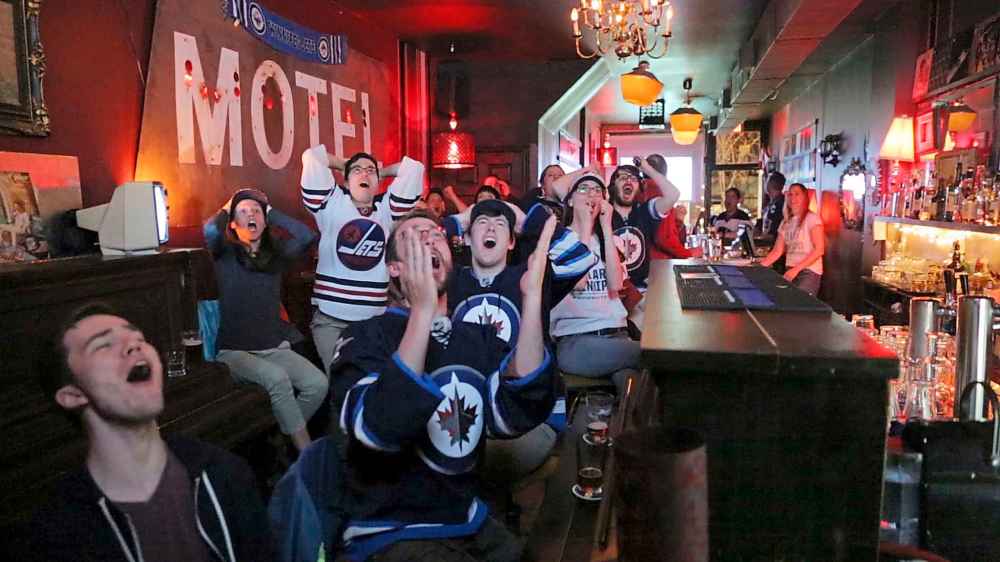 May 1 — Jets fans react to the game at Motel bar in Toronto. The bar is a gathering place for ex-Winnipeggers, and is packed with Jets fans during the playoffs.JOHN WOODS / WINNIPEG FREE PRESS
