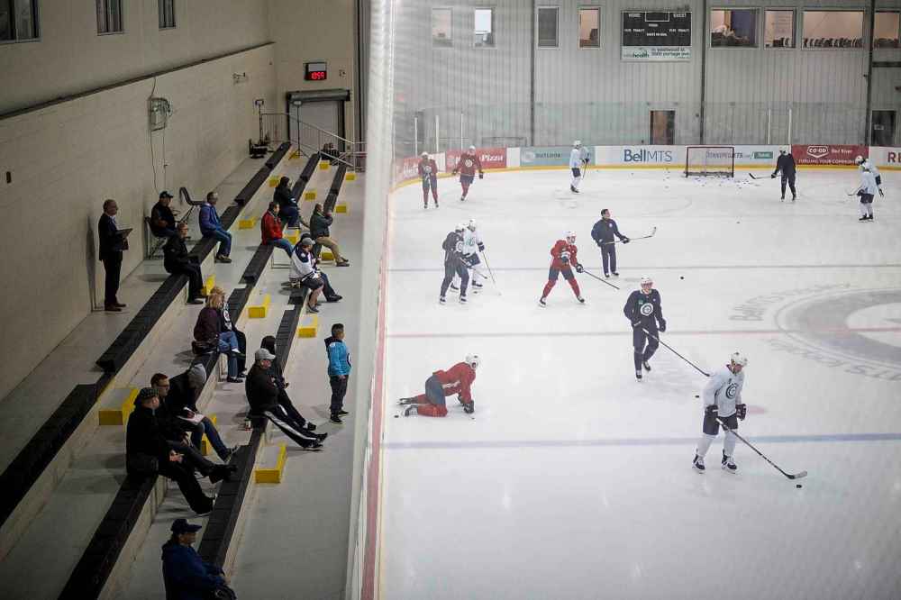 October 2 — Fans watch as the Winnipeg Jets practice at the Bell MTS Iceplex Tuesday morning.JOHN WOODS / WINNIPEG FREE PRESS