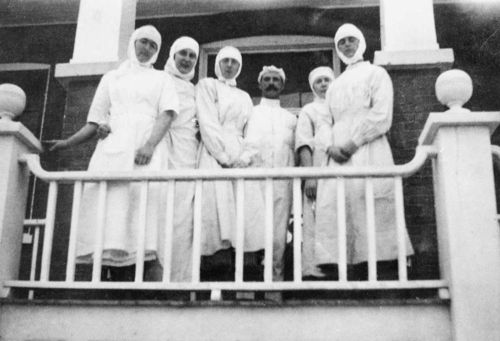 The Winnipeg General report states that one pupil nurse — basically all the nurses in hospitals except supervisors were pupil nurses back then, while graduates worked privately outside hospitals — died from influenza. Her name was Florence Smith. Another fatality was graduate nurse Eva McNee, who died at King George Hospital.