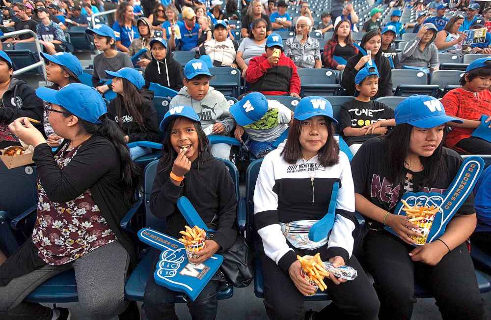“This has given our kids memories they won’t forget,” he said, as his wife, Cora, and two daughters, Hailey and Lauren, watched the game decked out in Bombers hats and eating hot dogs and fries provided by the team.