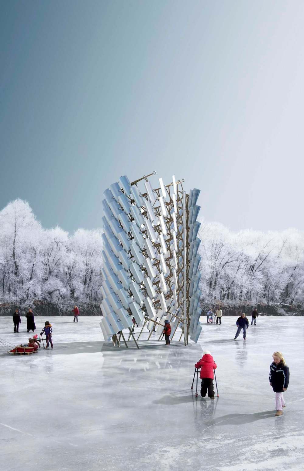 The winning designs were selected by a blind jury, and show very different interpretations of what a warming hut can be.