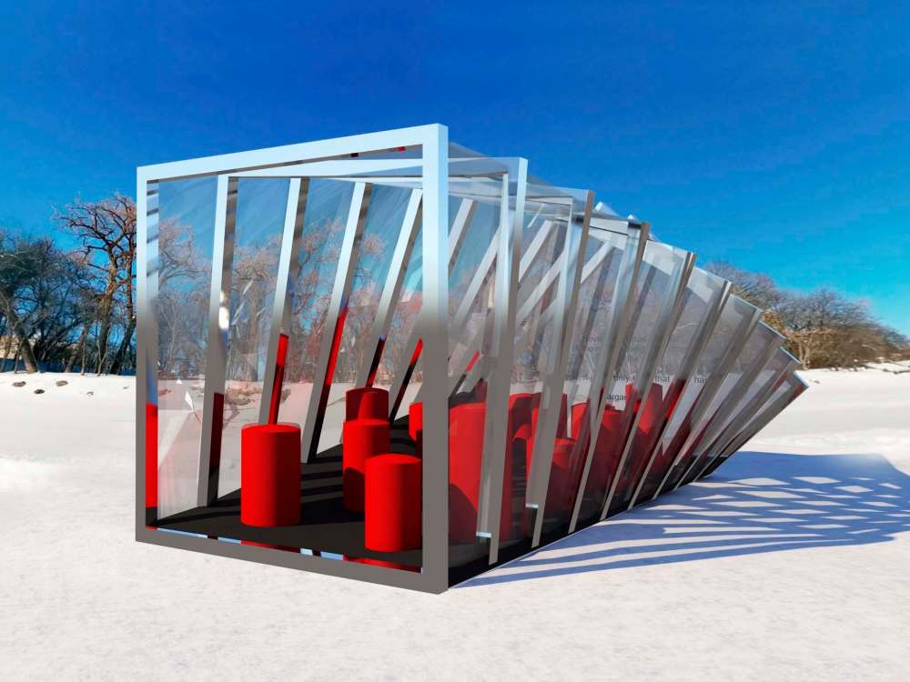 Manitoba Building Trades and Mistecture Architecture and Interiors Inc., collaborated on The Stand, a reflective hut that pays homage to the 1919 General Strike, with red accents meant to evoke the violence of Bloody Saturday.