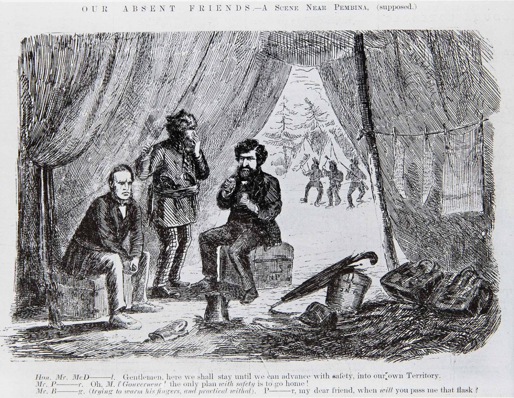 After being holed up for several weeks in Pembina, unable to discharge his duties as the Queen’s representative in the North-West Territories, McDougall left for home before Christmas.