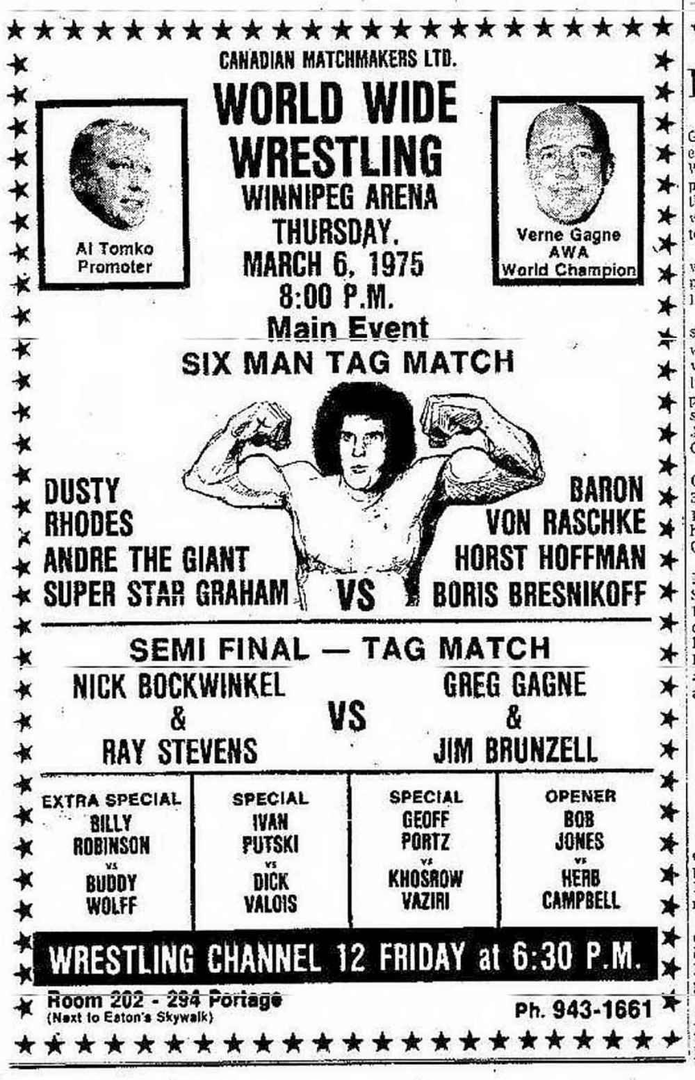 The WWF was picking up steam as it began to poach talent from rivals — including the AWA — as McMahon was able to sign Hogan, Andre the Giant and several other big names earlier in the year. But Winnipeg was loyal to the AWA and only 2,000 fans came out to see a card that featured Andre the Giant and Kamala in the main event.