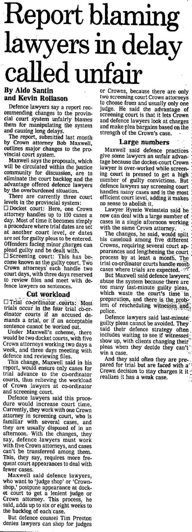 “If I had ever done something bad, and was going to plead guilty, Hymie would be the first guy I would go to. He had a real knack and a super reputation.” – Retired Crown prosecutor Brian Bell