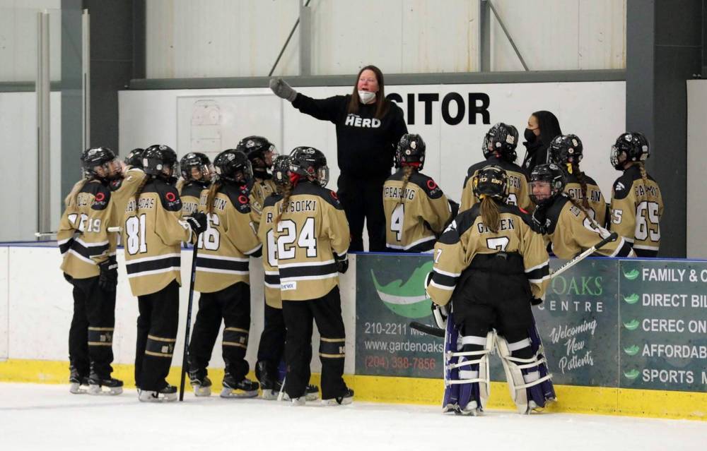 DARRYL GERSHMAN PHOTO Ferguson behind the bench with the Manitoba Herd of the National Ringette League.