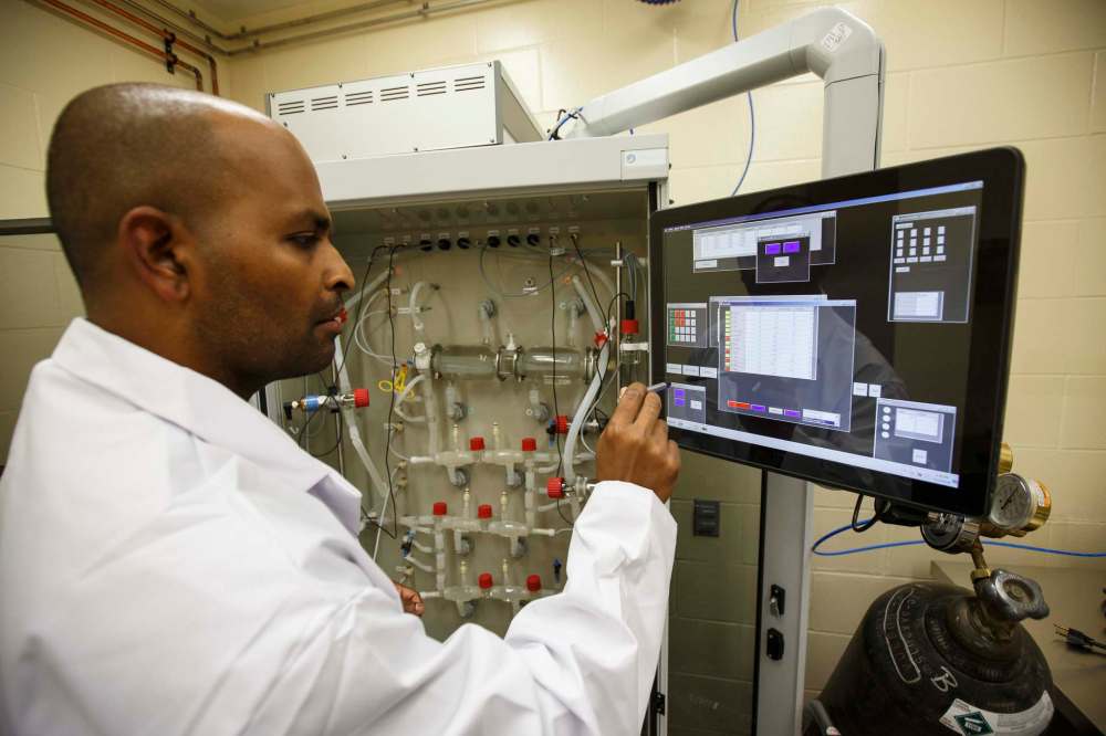 With the flick of a switch, the $600,000 artificial stomach that simulates human digestion hums to life. Then, with the back of his pen, Joseph pokes at the buttons on the touch-screen monitor, configuring the artificial stomach’s settings.