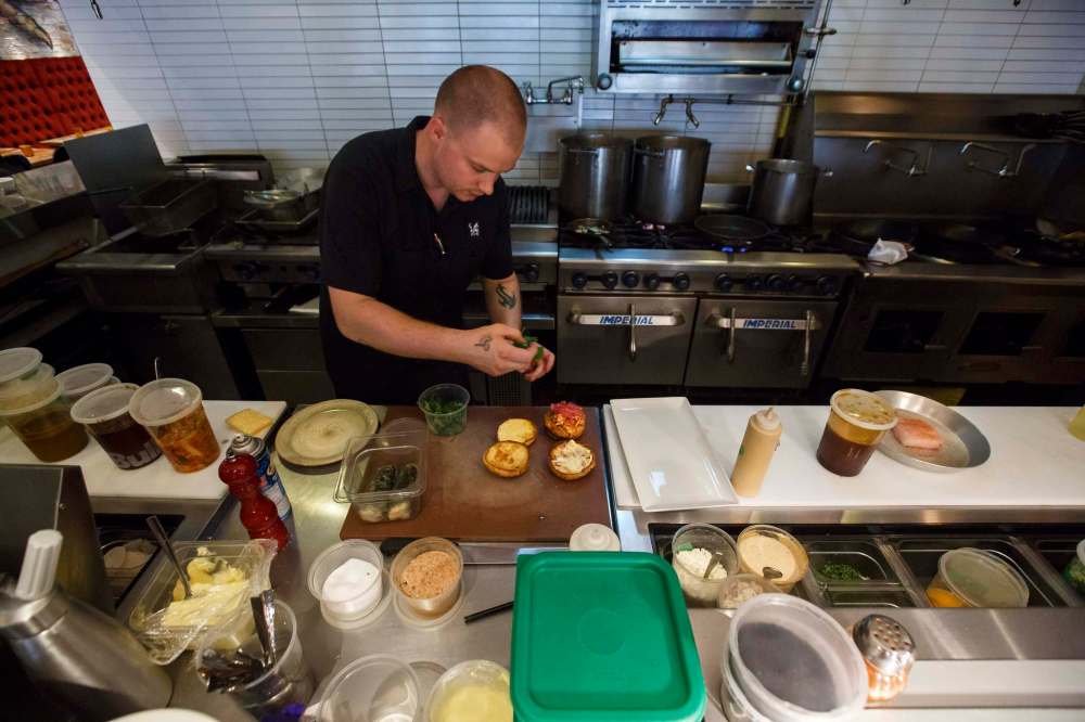 Friesen plates the restaurant's entry for this fall's Burger Week for a social-media photographer.