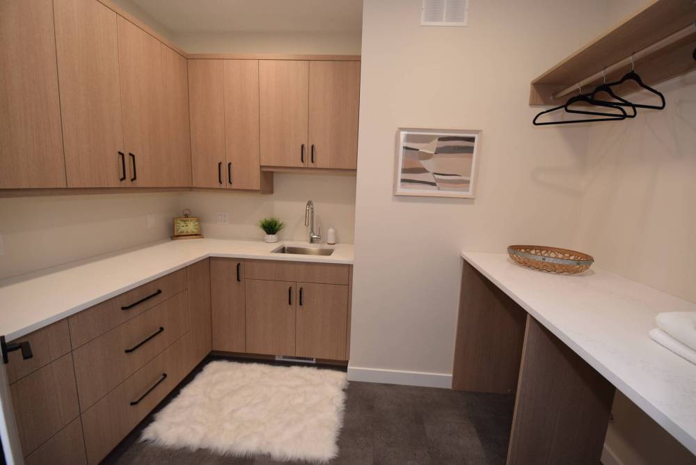 “That’s how each Paradigm home is designed — with function in mind,” notes Kirady, adding that stylistic touches are added to seamlessly complement user-friendly design features. “The wing to the right holds a closet, powder room and a huge main floor laundry room with sink and tons of counter and storage space.”