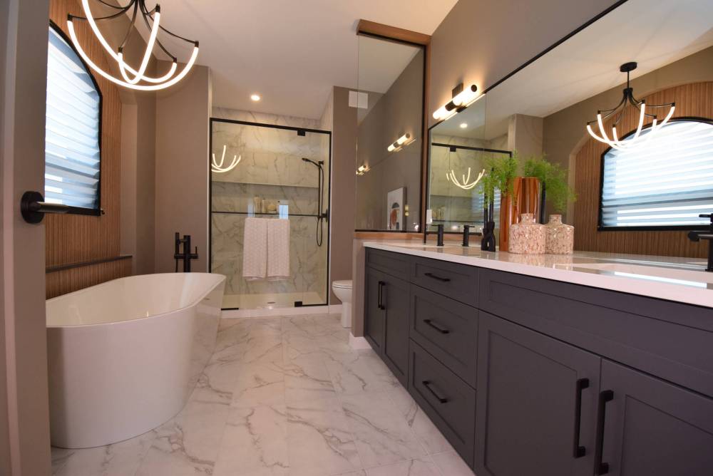“The walk-in closet, which is eight-by-10-feet in size, offers tons of storage for wardrobe, while the ensuite is a relaxing, spa-like space with its tile floor, soaker tub and tiled walk-in shower.”
