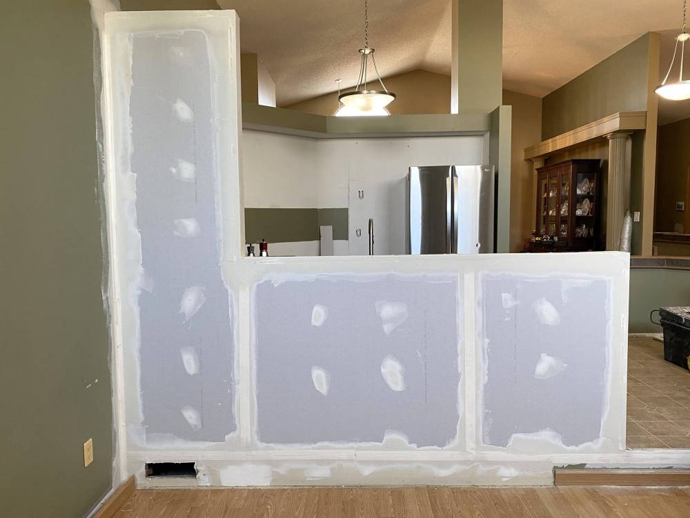 A partial wall is introduced during the shell prep stage of a kitchen reno to better suit the enhanced design layout of the new cupboards.
