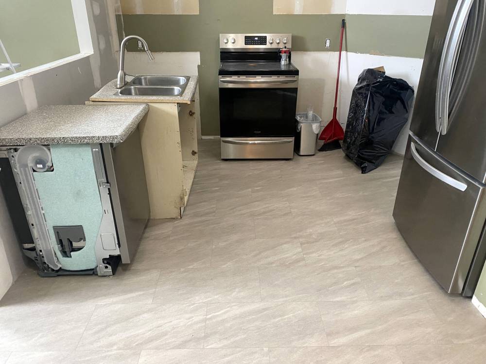 Kitchen shell prep includes vinyl-plank flooring