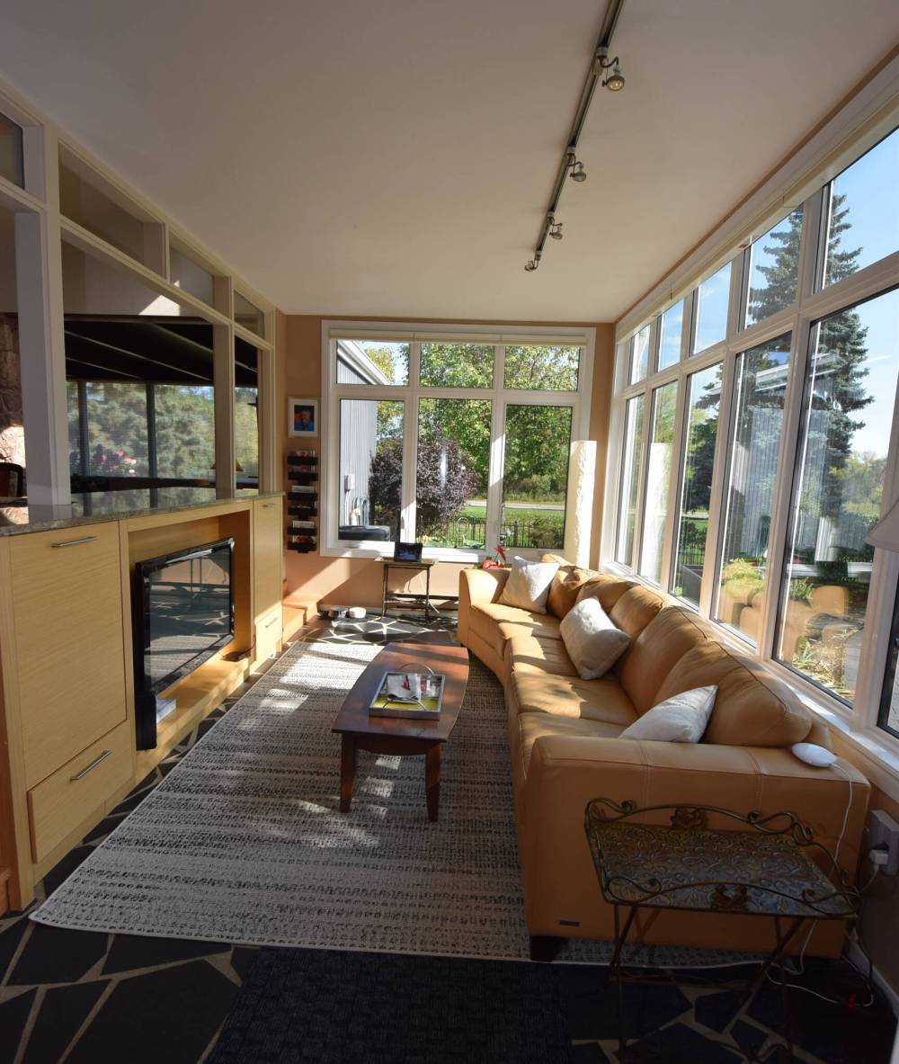 “There’s a gorgeous four-season sunroom with a wall of windows, and a screened-in, three-season sunroom next to it that leads out to a private, park-like backyard with patio,” says Miller.