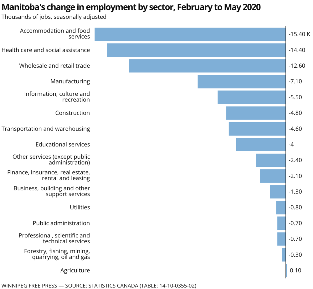 Even if Manitoba doesn’t get a second wave of COVID-19 in the fall or winter, the recovery is going to be slow and painful. Some of the statistics government will likely trot out in future months may not show it, but the economic damage will be deep, and widespread, for some time.
