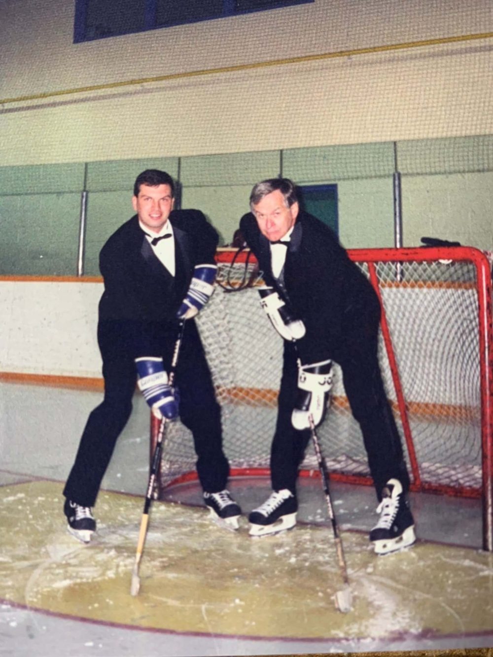 Dutch’s humour was on regular display away from the rink, too. Rob remembers coming home one night while his dad was babysitting his infant son, Tommy.