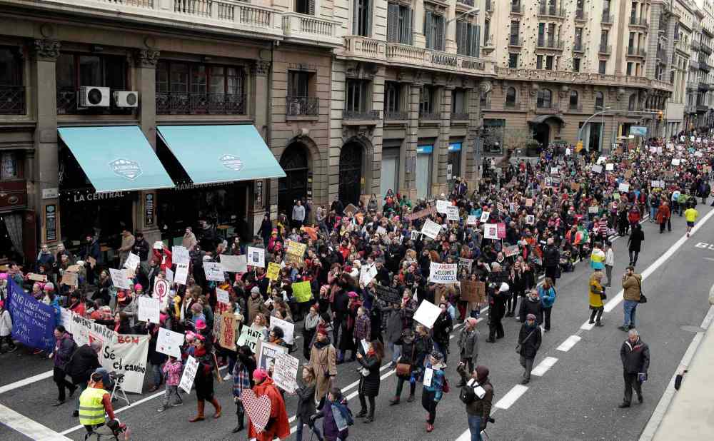 CP People take part during the Women's March rally in Barcelona, Spain, Saturday, Jan. 21, 2017. The march was held in solidarity with the Women's March on Washington, advocating women's rights and opposing Donald Trump's presidency. (AP Photo/Manu Fernandez)