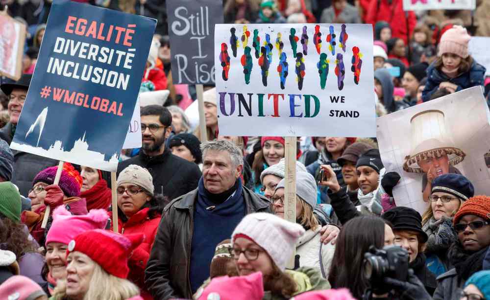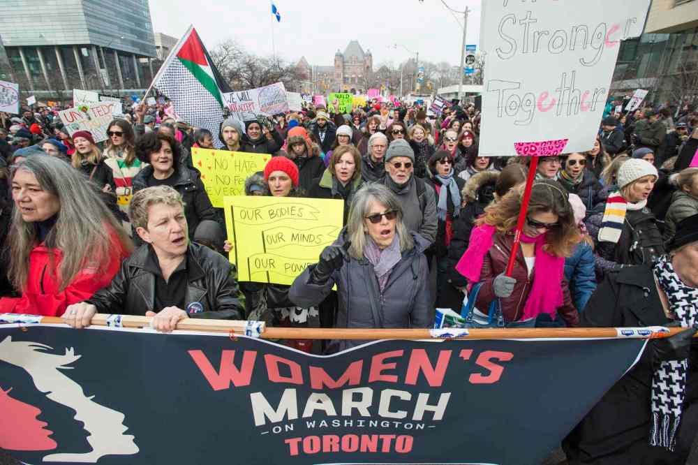 CP Protesters march, in support of the Women's March on Washington, in Toronto on Saturday, January 21, 2017. Protests are being held across Canada today in support of the Women's March on Washington. Organizers say 30 events in all have been organized across Canada, including Ottawa, Toronto, Montreal and Vancouver. THE CANADIAN PRESS/Frank Gunn