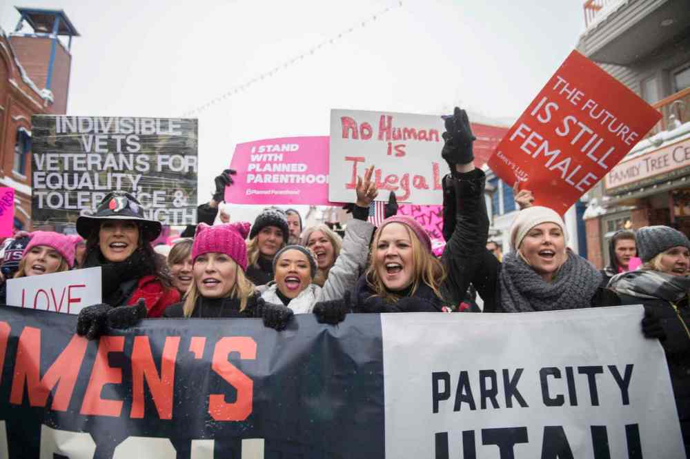 CP Actresses Chelsea Handler and Charlize Theron participate in the "Women's March On Main" during the 2017 Sundance Film Festival on Saturday, Jan. 21, 2017, in Park City, Utah. (Photo by Arthur Mola/Invision/AP)