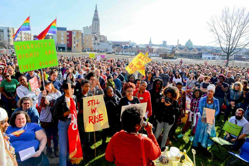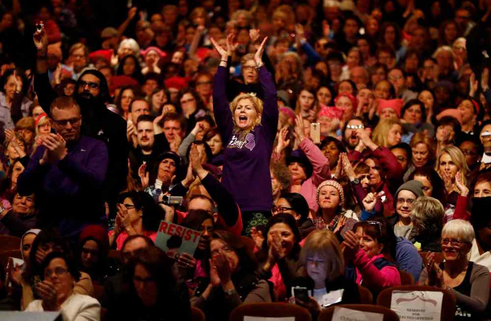 CP A crowd reacts to comments by U.S. Rep. Bonnie Watson Coleman, D-NJ, during a rally in support of the national Women's March on Washington during a gathering at Patriots Theater at the War Memorial, Saturday, Jan. 21, 2017, in Trenton, N.J. The march was held in in conjunction with with similar events taking place around the nation following the inauguration of President Donald Trump. (AP Photo/Julio Cortez)