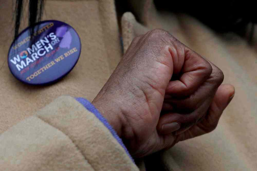 CP A woman gestures while listening to speakers in support of the national Women's March on Washington during a rally on the steps of the New Jersey Statehouse, Saturday, Jan. 21, 2017, in Trenton, N.J. The march was held in in conjunction with with similar events taking place around the nation following the inauguration of President Donald Trump. (AP Photo/Julio Cortez)
