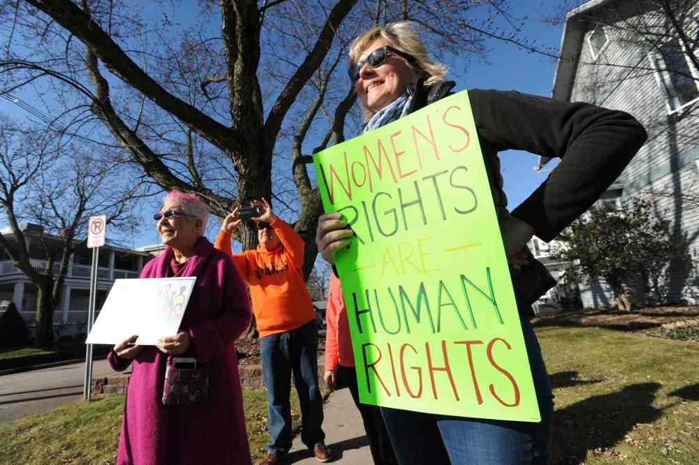 CP People take part in a Women's March rally on Saturday, Jan. 21, 2017, in Greenville, S.C. The rally was held in conjunction with with similar events taking place in Washington and around the world following the inauguration of President Donald Trump. (AP Photo/Rainier Ehrhardt)