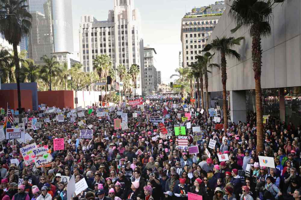 CP Protesters fill the streets of downtown Los Angeles as they gather for the Women's March against President Donald Trump Saturday, Jan. 21, 2017. The march is being held in solidarity with similar events taking place in Washington and around the nation. (AP Photo/Jae C. Hong)
