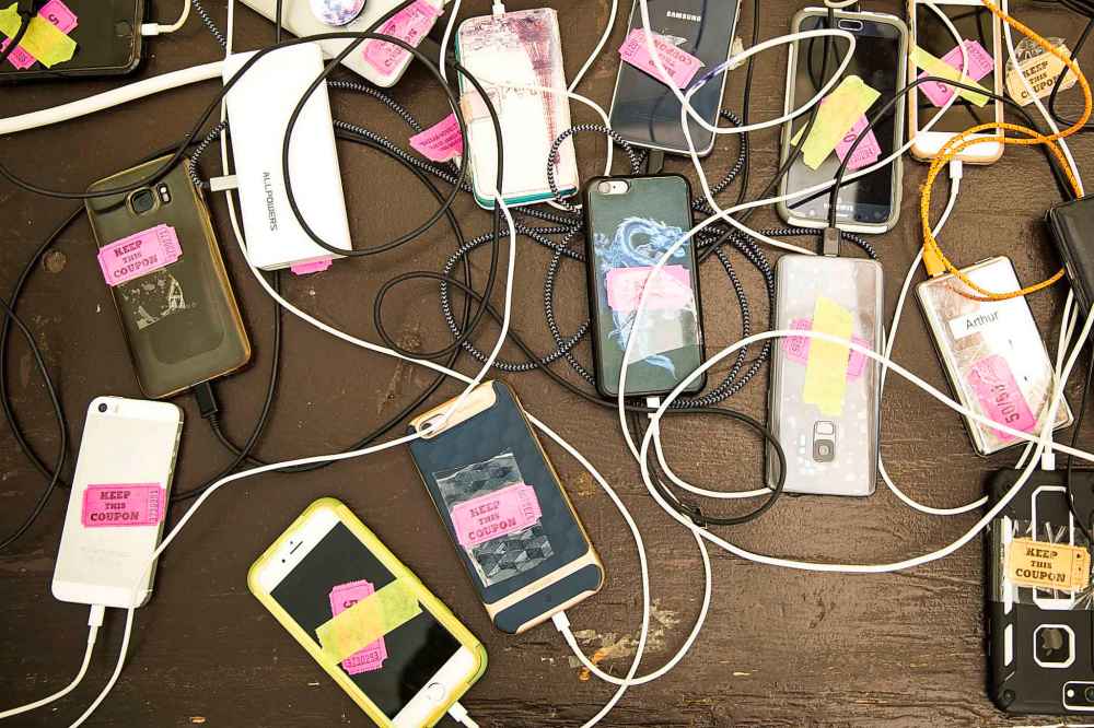 The cell phone charging station at the InfOasis tent at the Winnipeg Folk Fest in Birds Hill Provincial Park on Friday, July 6, 2018.MIKAELA MACKENZIE / WINNIPEG FREE PRESS