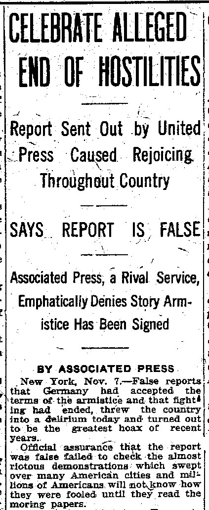 There was only one problem: the report wasn’t true. The war did not actually end until Nov. 11, four days later.