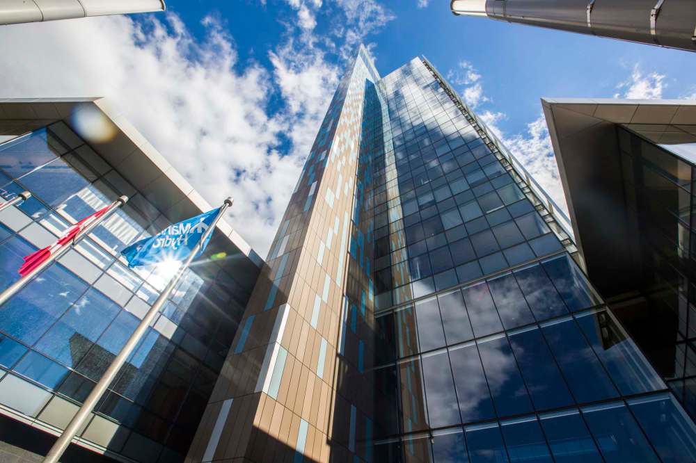 Manitoba Hydro Place on Portage Avenue uses a dual curtain of windows to provide natural light and dimmable, programmable lighting when needed, while allowing employees control over ventilation provided through the use of a solar chimney that draws air up and out of the building. (Mikaela MacKenzie / Winnipeg Free Press files)