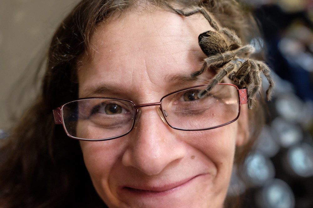 On a recent Sunday, Kimberley-Anne Johnson (a.k.a. The Crazy Spider Lady) was standing behind the table of her booth at the Manitoba Reptile Breeders Expo holding out a tarantula that filled the palm of her hand while a five-year-old girl tentatively stroked its furry back. I have to admit it made my skin crawl a little.