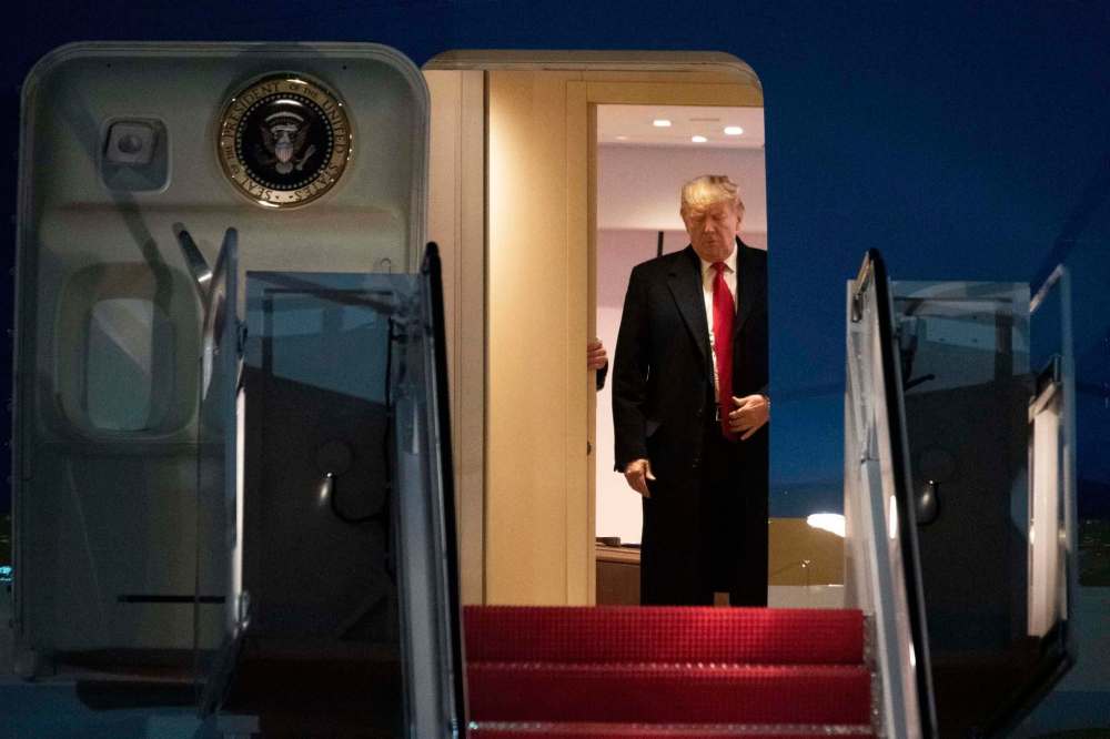 President Donald Trump returns to U.S. soil after abruptly leaving the NATO summit before its closing press conference. (Kevin Wolf / Canadian Press)