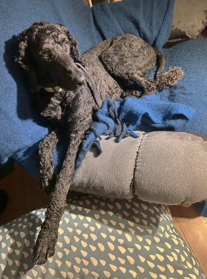 Prior to her coiffure, Penelope was a bit scary looking, since her curly coat, along with her exceptionally long poodle legs and extended torso, made her look like a hulking beast. To the uninitiated, she looked kind of frightening, especially when running up in gleeful welcome.