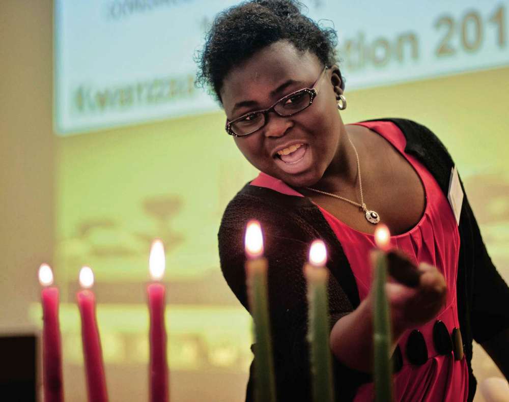 Winnipeg Free Press file photo Tolu Oladele lights the last candle during a Kwanzaa celebration.