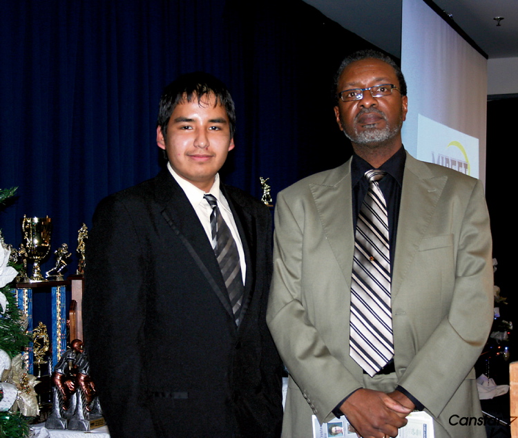 Nomads tailback Tyson Haines, who led the league in both rushing and scoring won the President’s Award as MVP. His team downed the St. Vital Mustangs 33-25 at Canad Inns Stadium on Oct.30 to take the midget title. It was the first win for the Nomads since 2006. They were finalists two years ago. The offensive player of the year was Nomads quarterback Justin Klaprat and top lineman honours went to Samuel Grant, also from the North Winnipeg squad.