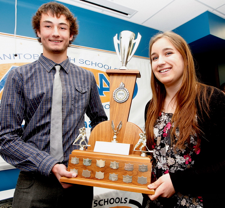 Liam Bilton of the city and provincial champions St. Paul’s Crusaders received the male award while high-scoring Jessica Kaminsky of Fort Richmond Collegiate was the first winner of the new female Belfour Award. Bilton, a league and provincial all-star, was the Crusaders’ leading scorer and the MVP in the city championship. He plans to play NCAA hockey in the future. Kaminsky, the MVP of the all-star game, will attend Union College in the fall.