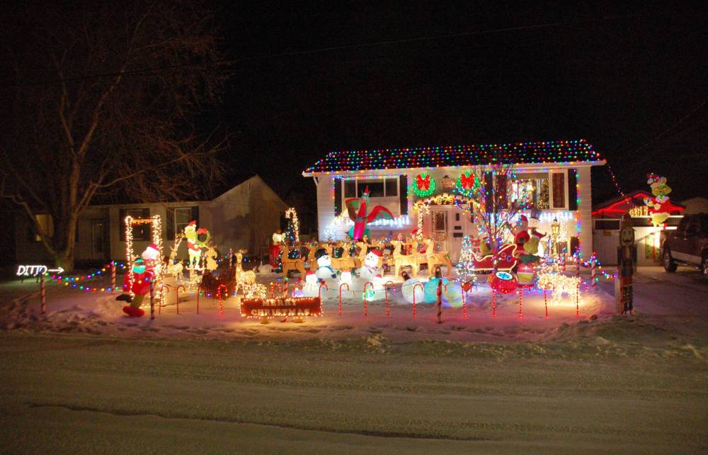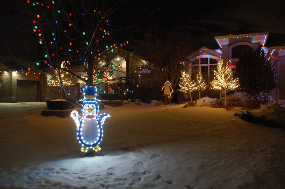 With the Winnipeg Christmas Map guiding the way, the Free Press Community Review took in the Christmas lights of Lindenwoods and Charleswood last week. Households along many of the neighbourhood streets in Lindenwoods get together every year to co-ordinate their light displays, creating Polar Bear Lane, Nutcracker Land, Candycane Lane and Penguin Parkway (Polar Bear Lane even broadcasts holiday music at 94.9 FM), while one Charleswood yard is so lit up the neighbour’s lawn simply features a lighted arrow and the word ‘Ditto’