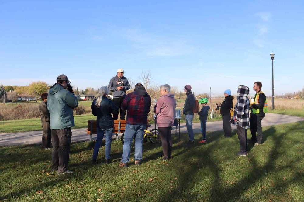 After a hearty “have at ’er” from van Aggelen, Crichton kicked off the new era of the revived association with an inaugural weed-picking event on Oct. 25, when a group of community members picked creeping thistles growing in and around the tall grass prairie Sturgeon Park’s bee gardens, under the knowledgeable direction of a naturalist service branch worker from the City of Winnipeg.