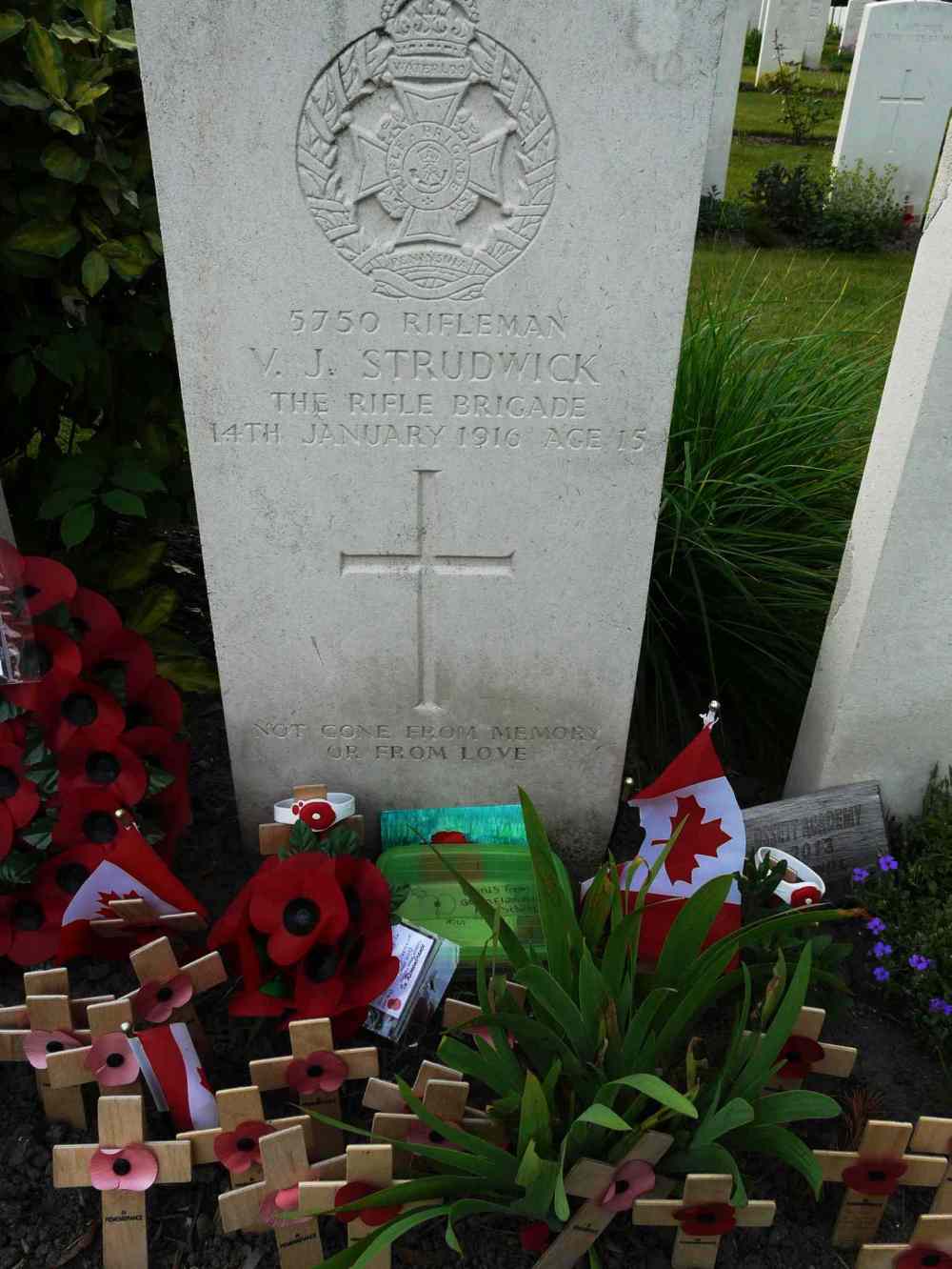 The poem didn’t mean much to us then, but standing among the rows of headstones, some of them marking Canadian graves, and outside the remains of McCrae’s field hospital, I felt its power, especially at the foot of the grave of Valentine Strudwick.