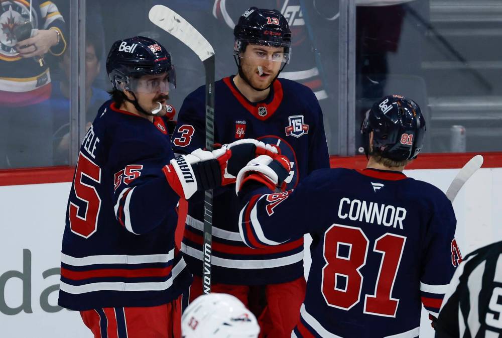 Everything should be on the table, including breaking up the top line of Mark Scheifele (left), Gabriel Vilardi (centre) and Kyle Connor, when it comes to solving the Jets’ scoring woes.