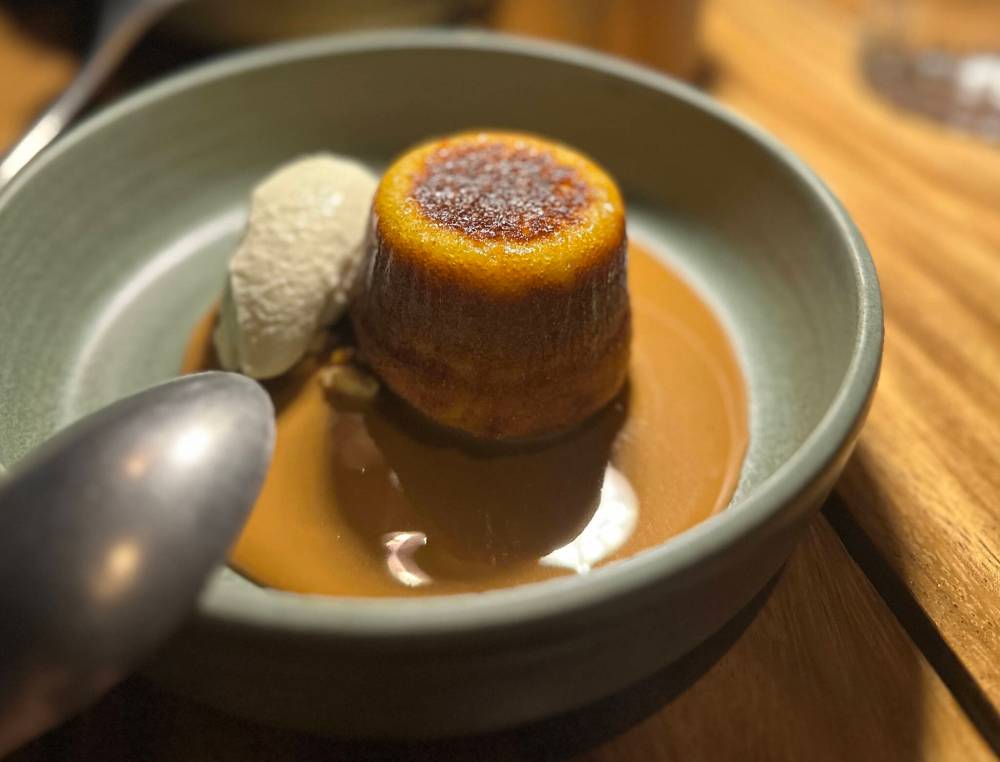 The corn cake with mezcal-caramel sauce is the perfect ending at Acres Retaurant.