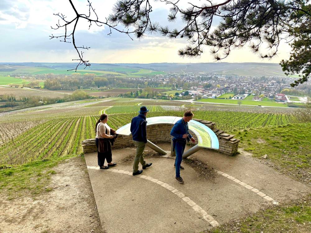 The lookout at Burgundy’s Vue Les Clos takes in the village of Chablis and surrounding vineyards.
